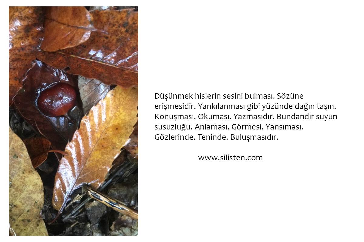 Düşünmek hislerin sesini bulması. Sözüne erişmesidir. Yankılanması gibi yüzünde dağın taşın. Konuşması. Okuması. Yazmasıdır. Bundandır suyun susuzluğu. Anlaması. Görmesi. Yansıması. Gözlerinde. Teninde. Buluşmasıdır.